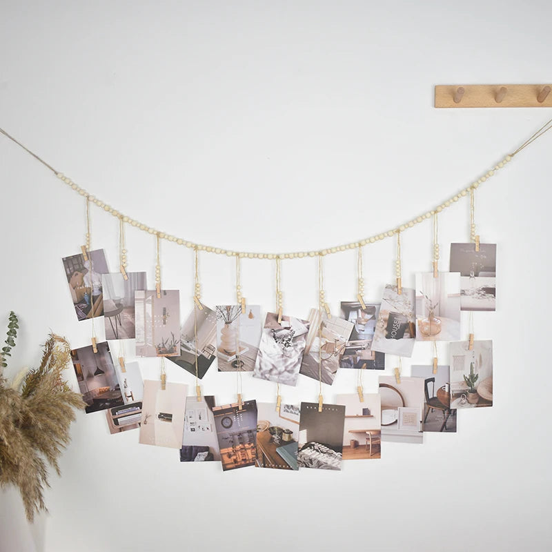 1 Pc Photo Display Wall Hanging Decor Boho Home Decoration Wooden Beads Macrame Tapestry For Wall Hanging Room Decors Aesthetic