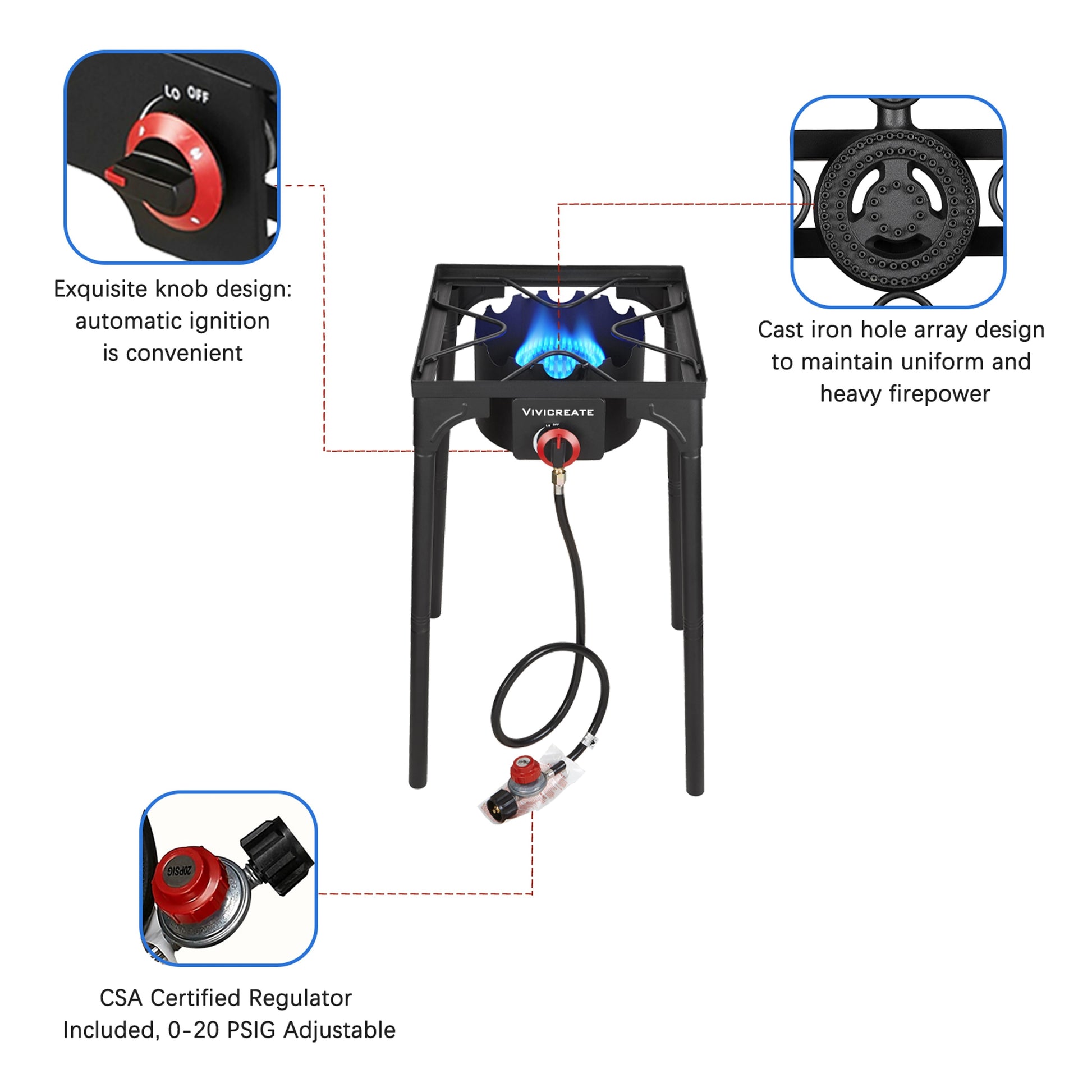 DR.CAMP Propane Gas Burner (1-2 Burners)with 20 PSIG High Pressure Regulator - Outdoor Camping Camp Garden BBQ Grill Stove Burner - Father'S Day Gift For Men