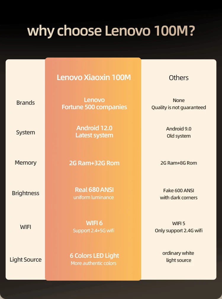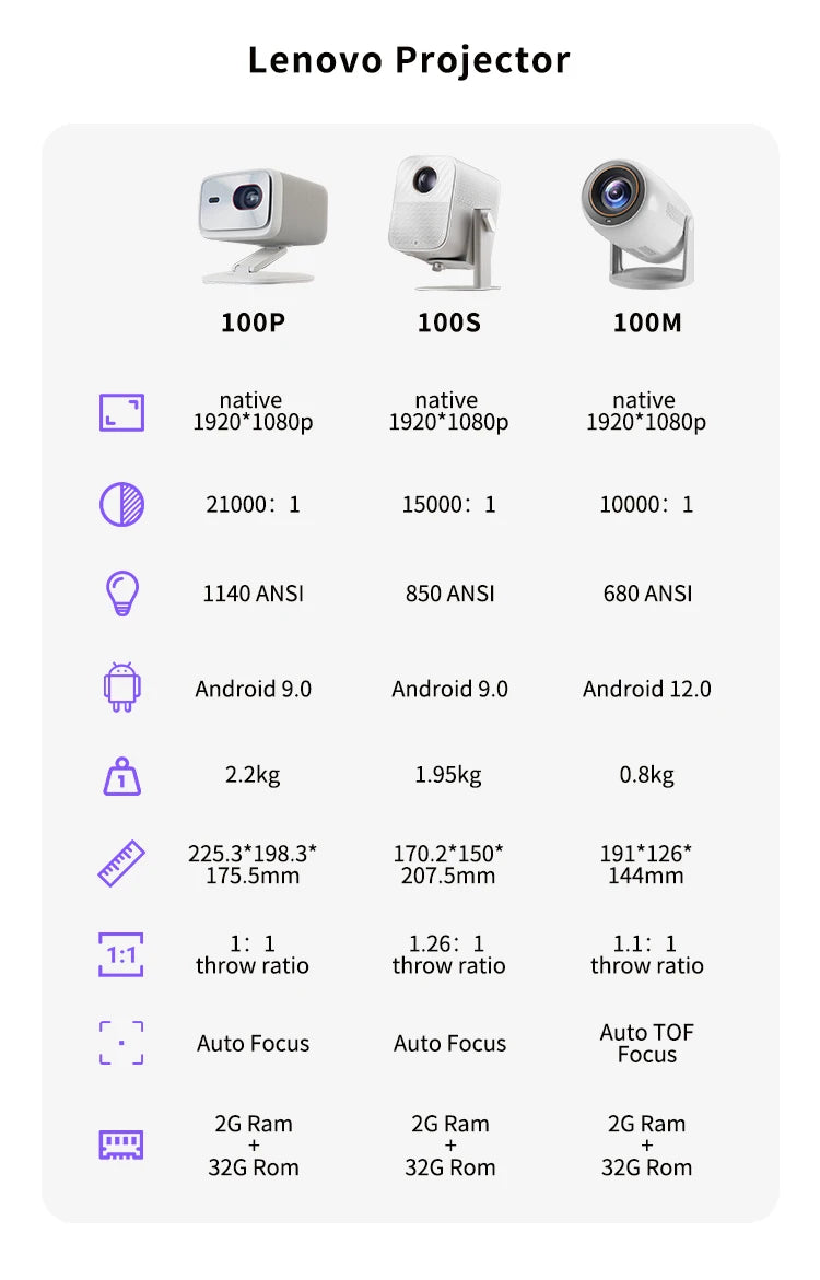 Lenovo Portable 4K Projector 100M Android 12 WIFI 6 TOF No-Sense Auto Focus Outdoor Full HD Projector Video Movie Home Theater