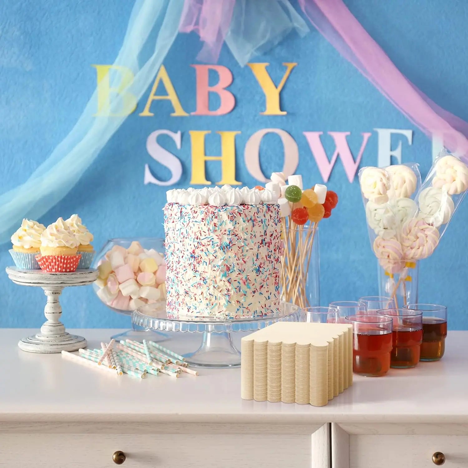 Scalloped Cocktail Napkins 2 Ply Paper Napkins Disposable Party Napkins Beverage Napkins for Wedding Dinner Birthday 5x5Inch